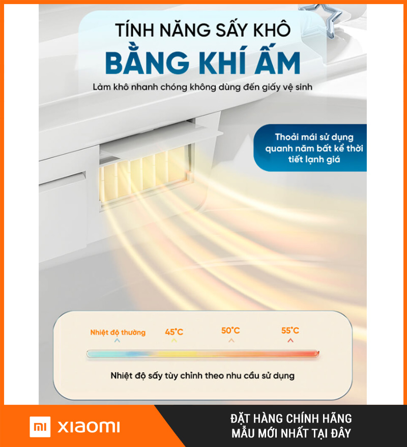 Sấy khô bằng gió ấm – Không cần giấy vệ sinh