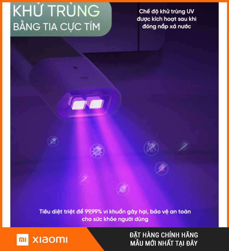 • Tia UV-C kép tự động khử trùng vòi rửa & lòng bồn cầu sau mỗi lần sử dụng