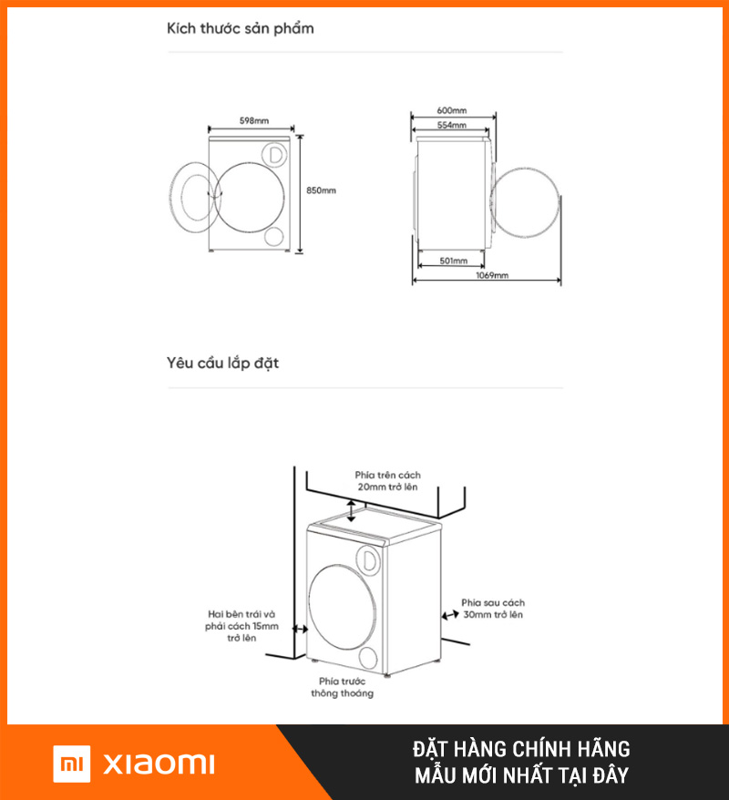 | Tên sản phẩm | Máy giặt sấy Xiaomi Mijia MJ107 |