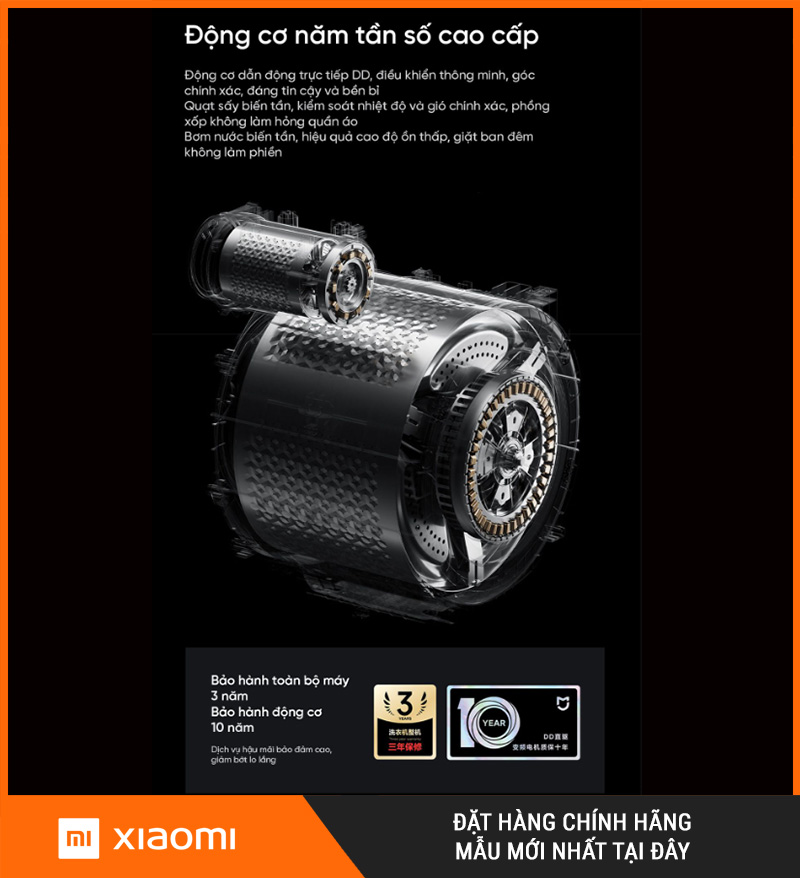 Không chỉ nổi bật ở thiết kế 2 lồng, Xiaomi Mijia MJ107 còn được trang bị cấu hình công nghệ thuộc nhóm cao cấp hàng đầu trong phân khúc máy giặt sấy gia đình.