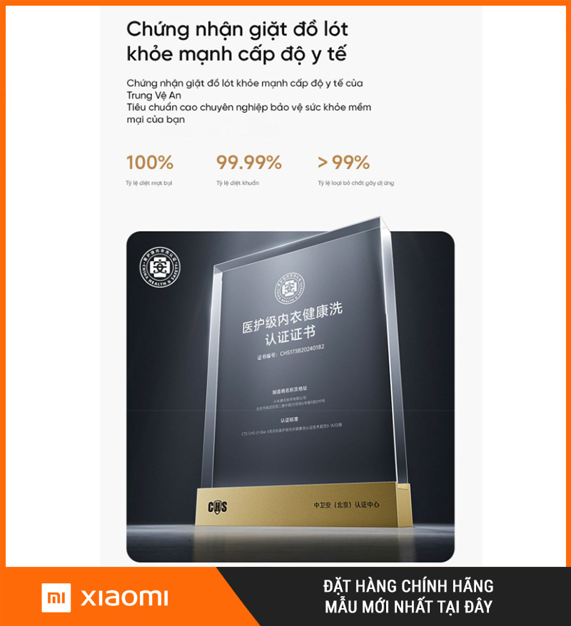 Một trong những điểm nổi bật nhất của Xiaomi Mijia MJ107 là chế độ giặt đồ lót đạt cấp độ y tế, được thiết kế riêng cho lồng giặt phụ.