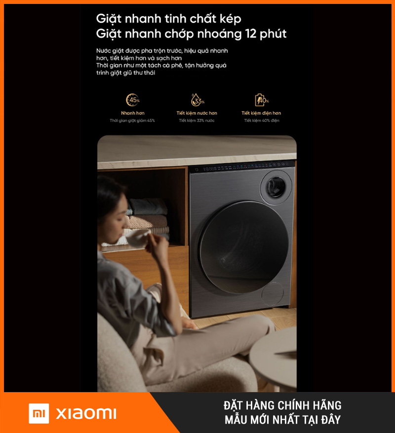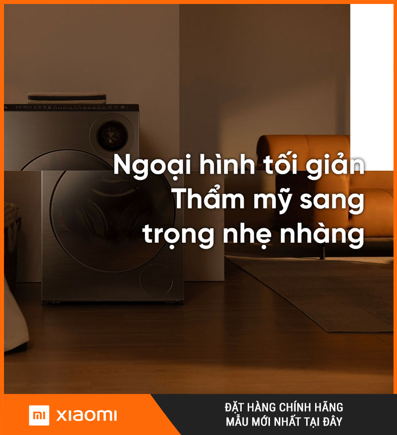Máy giặt sấy Xiaomi Mijia MJ107 mang ngôn ngữ thiết kế tối giản đặc trưng của Xiaomi, chú trọng sự tinh tế và hài hòa với không gian sống hiện đại.