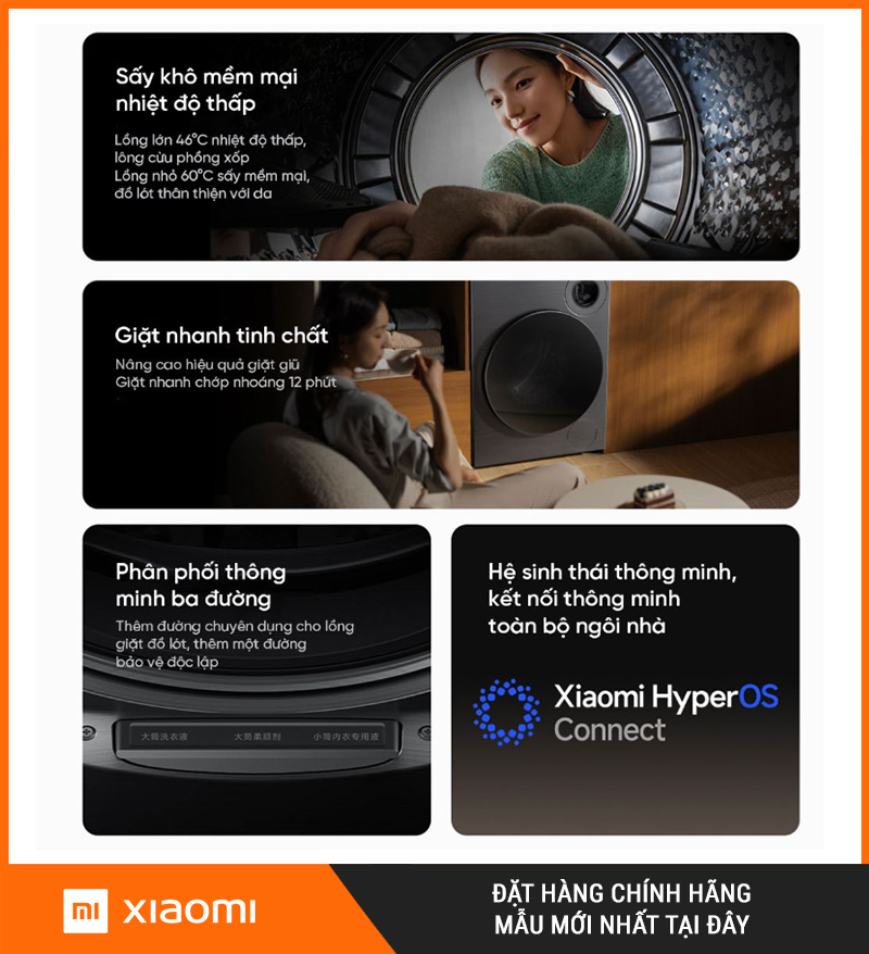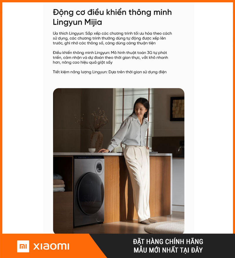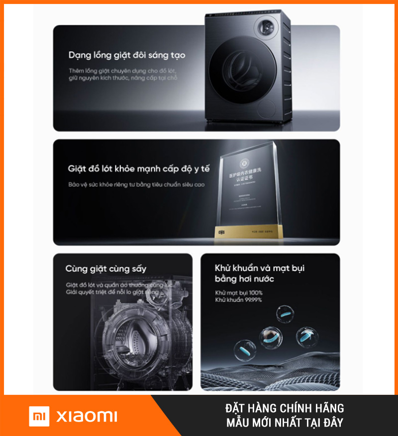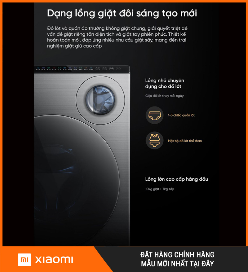Máy giặt sấy Xiaomi Mijia MJ107 – giặt 10kg, sấy 7kg là giải pháp giặt sấy cao cấp toàn diện dành cho gia đình hiện đại. Sản phẩm nổi bật với thiết kế 1 máy 2 lồng độc đáo, tiêu chuẩn giặt đồ lót cấp độ y tế, công nghệ khử khuẩn hơi nước, cùng hệ thống điều khiển thông minh Lingyun Mijia.