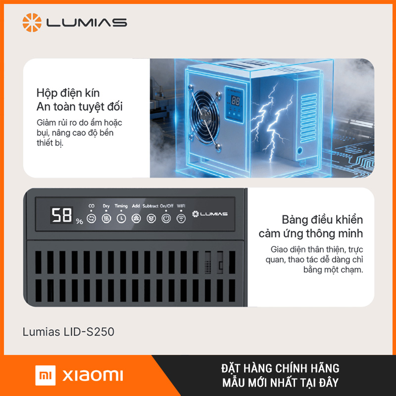 Lumias LID-S250 được trang bị hộp điện kín giúp an toàn hơn trong môi trường có độ ẩm/bụi. Đi kèm bảng điều khiển cảm ứng thông minh giúp thao tác nhanh, dễ theo dõi và cài đặt chế độ.