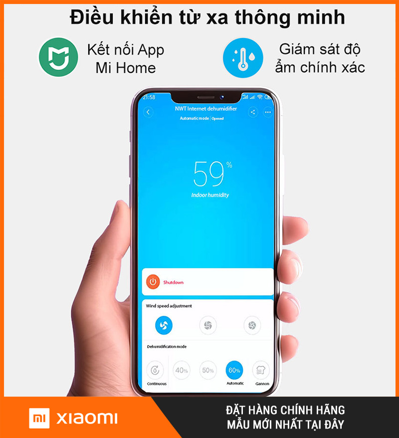 NEW WIDETECH 18L có thể kết nối Wi-Fi và điều khiển thông minh qua ứng dụng Mi Home, giúp bạn dễ dàng quản lý máy ở bất kỳ đâu: