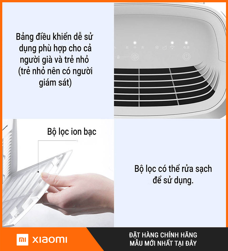 Vận hành êm, có bộ lọc ion bạc kháng khuẩn, hợp với gia đình có trẻ nhỏ hoặc người lớn tuổi.