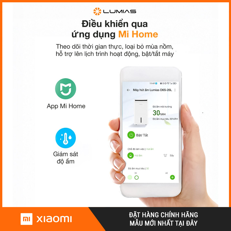 Nếu bạn đang tìm một chiếc máy hút ẩm kiêm lọc không khí chính hãng cho không gian rộng, cần hút ẩm mạnh 26L/ngày, lọc bụi mịn PM2.5 với HEPA H13, hỗ trợ kháng khuẩn bằng ion bạc, vận hành êm 39dB và có điều khiển MiHome, thì Lumias D6S-26L là lựa chọn đáng cân nhắc cho gia đình hiện đại.