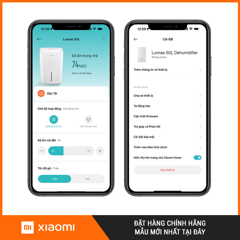 Máy hỗ trợ điều khiển thông minh qua ứng dụng MiHome, giúp bạn quản lý nhanh trên điện thoại: bật/tắt, điều chỉnh chế độ và theo dõi vận hành linh hoạt. Rất tiện khi bạn bận rộn, đang ở phòng khác hoặc muốn bật máy trước để không gian khô thoáng sẵn khi về/đến nơi.
