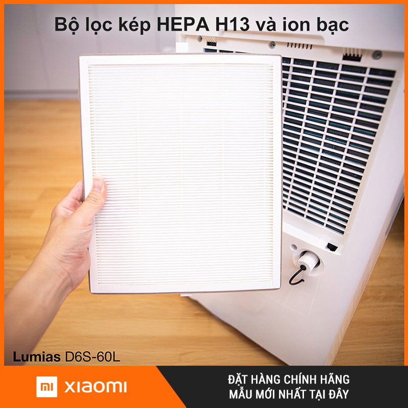 Lumias D6S-60L được trang bị hệ thống lọc kép gồm HEPA H13 và ion bạc, giúp nâng trải nghiệm không khí trong không gian kín.