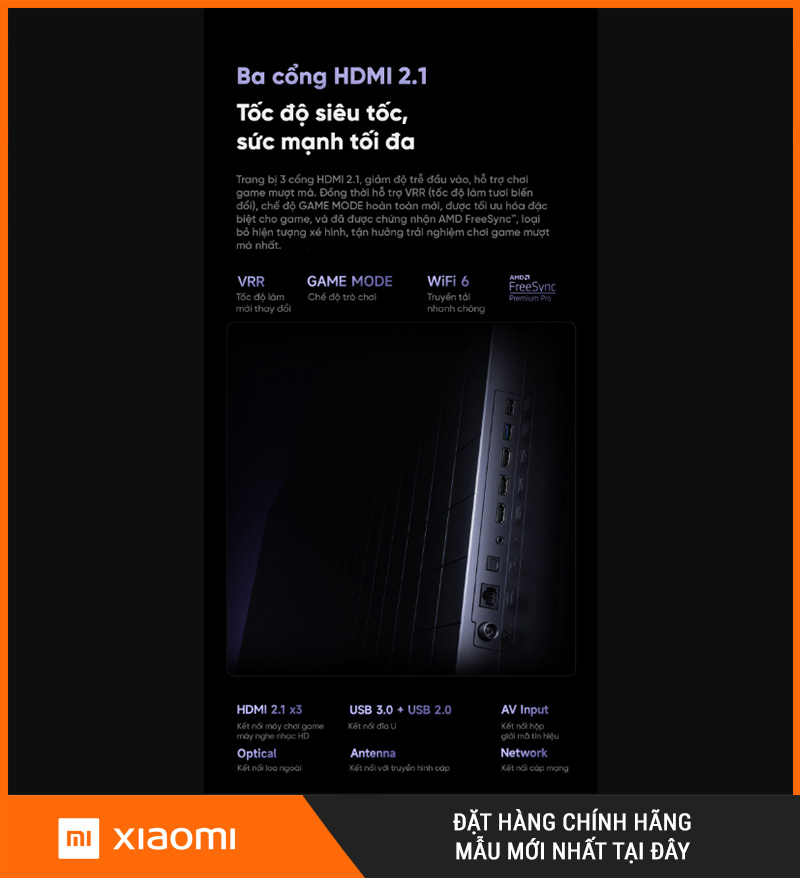 HDMI 2.1 (x3) – hỗ trợ eARC, VRR, thích hợp cho dàn âm thanh cao cấp và game console mới.