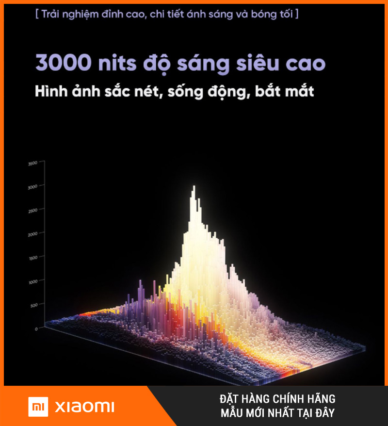 Độ sáng cực đại lên tới 3200 nits, thuộc top đầu hiện nay, đảm bảo hình ảnh luôn rõ nét kể cả trong phòng có ánh sáng mạnh hoặc khi xem ban ngày.