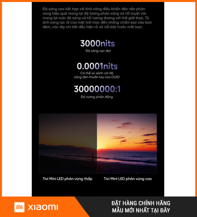 Độ sáng cực đại 3200 nits: đảm bảo khung hình rõ ràng và rực rỡ ngay cả trong không gian tràn ngập ánh sáng, đồng thời tái hiện hoàn hảo các cảnh tối sâu thẳm với độ tương phản ấn tượng.