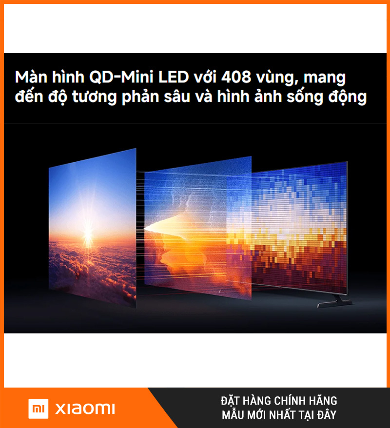 Xiaomi đã trang bị cho sản phẩm công nghệ QD-MiniLED, một bước tiến vượt bậc so với LED truyền thống. Công nghệ này giúp màn hình có hàng nghìn vùng kiểm soát ánh sáng độc lập, cho phép: