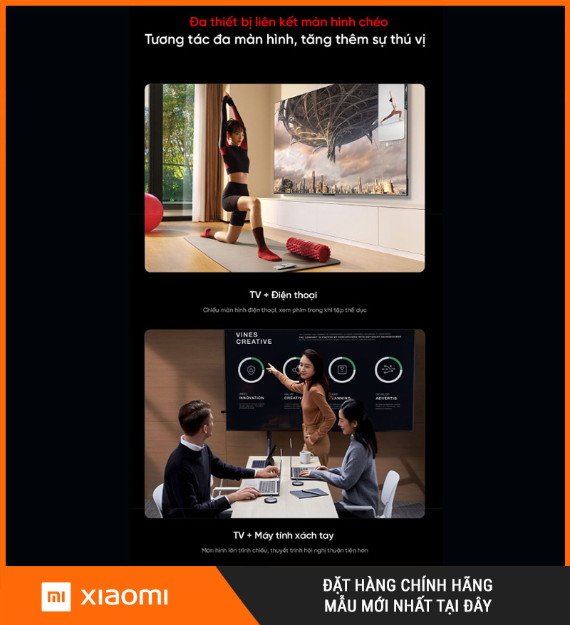 Một điểm mới nổi bật trên Redmi X65 2025 là khả năng đồng bộ hóa nội dung và màu sắc giữa các thiết bị trong hệ sinh thái Xiaomi, mang lại trải nghiệm liền mạch và đồng nhất:
