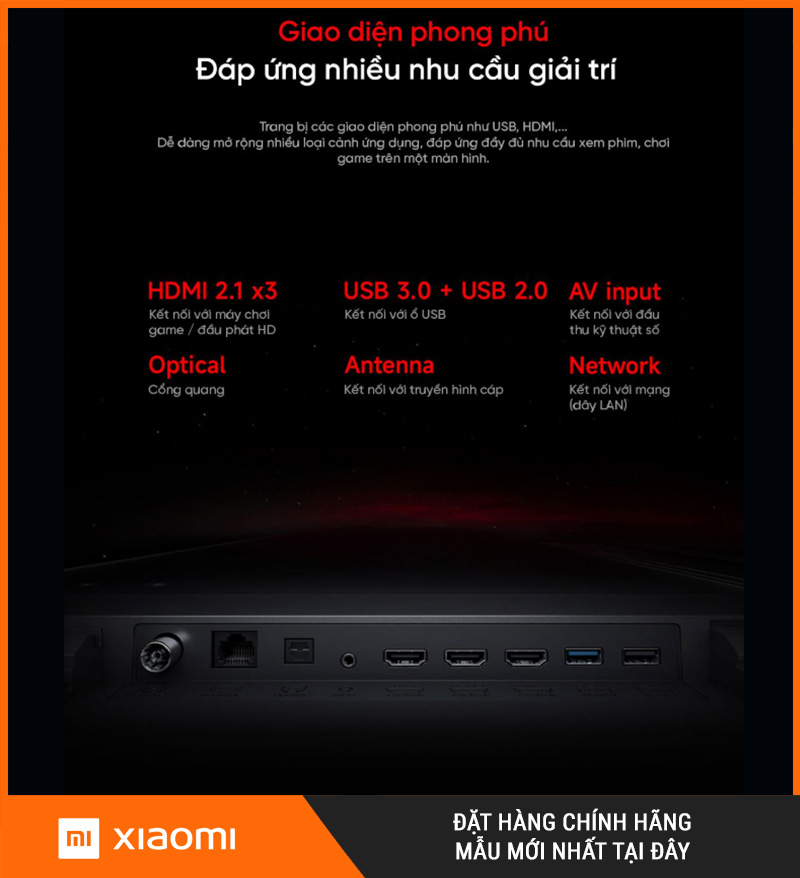 Nhờ sự đa dạng cổng kết nối, Redmi X65 trở thành trung tâm giải trí hoàn chỉnh, linh hoạt trong mọi tình huống sử dụng.