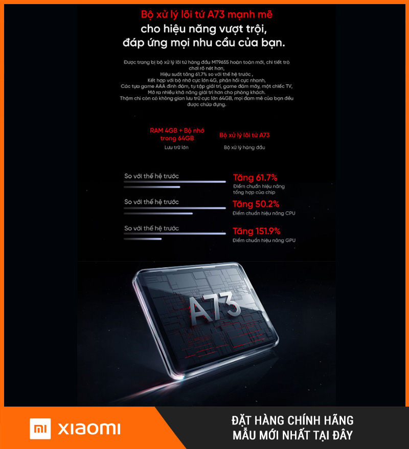 Cấu hình mạnh mẽ A73 – RAM 3GB – ROM 64GB