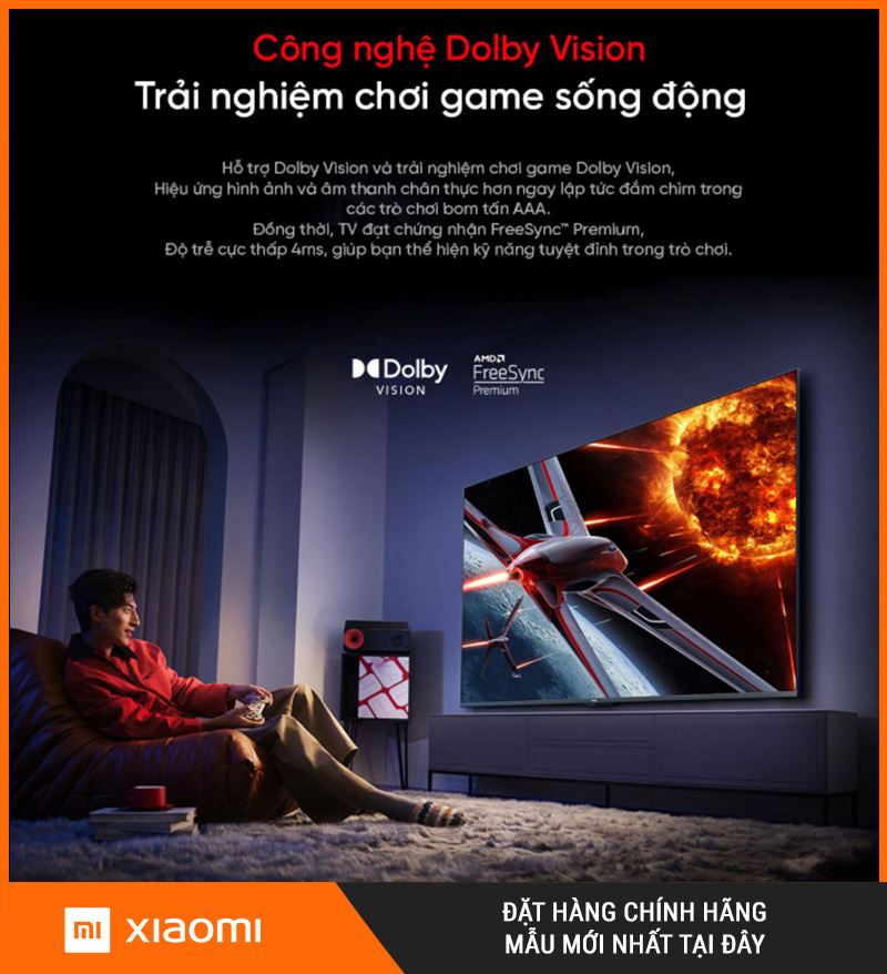 Tính năng này khiến Redmi X65 trở thành màn hình gaming cỡ lớn lý tưởng, đặc biệt cho các không gian như phòng khách, phòng ngủ master, phòng game riêng tại nhà.
