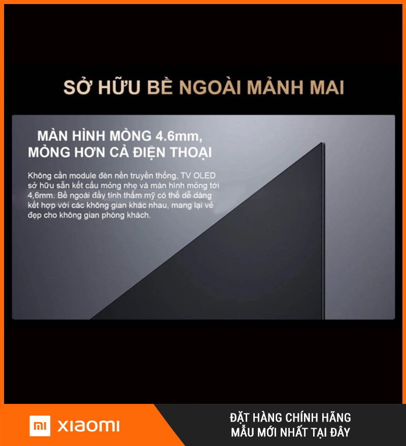 OLED là điểm mạnh cốt lõi của Xiaomi TV6: mỗi điểm ảnh tự phát sáng (không phụ thuộc đèn nền chung), nên tạo khác biệt rõ rệt về độ sâu và độ nổi của hình.