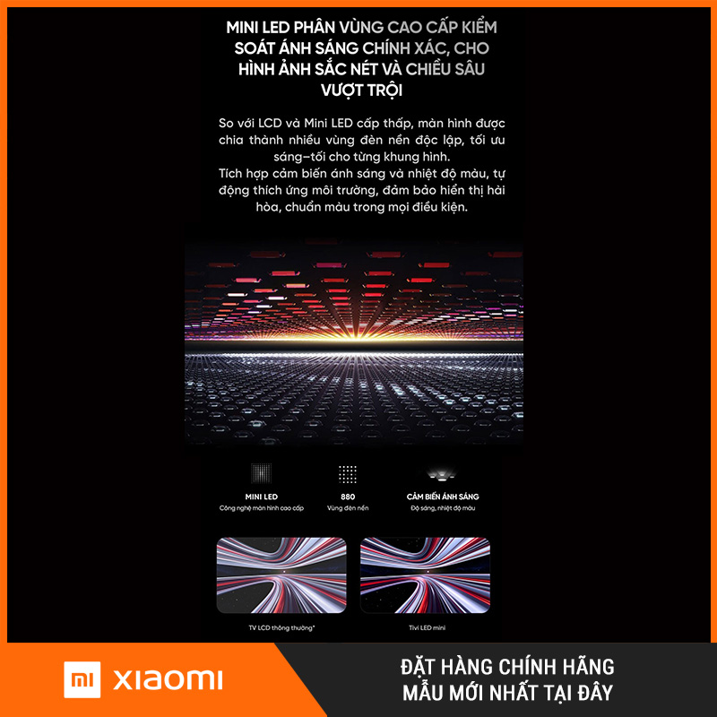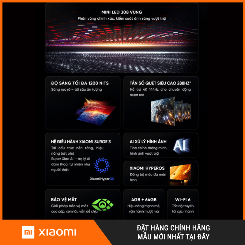 Tivi Xiaomi Redmi X75 MiniLED 2026 (RAM/ROM 4/64GB) là dòng TV hướng đến trải nghiệm xem “đã mắt” ở phòng khách: đen sâu – sáng mạnh – màu chuẩn điện ảnh. Nếu bạn hay xem phim HDR, bóng đá, hoặc nhà có nhiều ánh sáng ban ngày, X75 là lựa chọn nổi bật trong tầm giá nhờ 3 lợi thế dưới đây.
