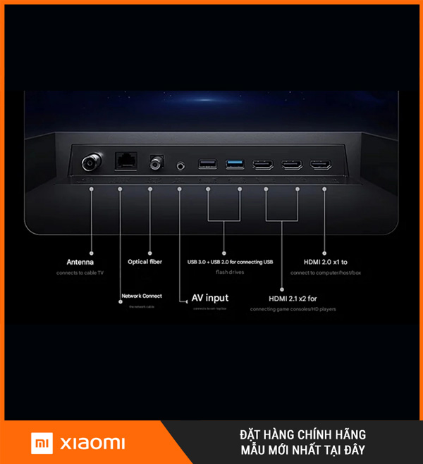 | Cổng kết nối | HDMI: 3 (gồm 2 HDMI 2.1, HDMI2 hỗ trợ eARC) |
