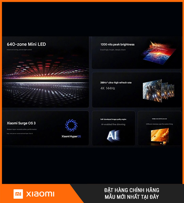 Redmi X85 Mini LED 2026 (mã L85RC-RX) là mẫu tivi 85 inch cao cấp mới nhất của Xiaomi, hướng đến người dùng yêu cầu cao về hiển thị, âm thanh, trải nghiệm chơi game và thiết kế sang trọng. Sản phẩm sở hữu công nghệ Mini LED với 640 vùng làm mờ cục bộ, độ sáng cực đại lên tới 1200 nits, tần số quét lên đến 288Hz, hỗ trợ Dolby Vision Gaming, và được trang bị HyperOS 3 – hệ điều hành riêng của Xiaomi tối ưu cho hệ sinh thái AIoT.
